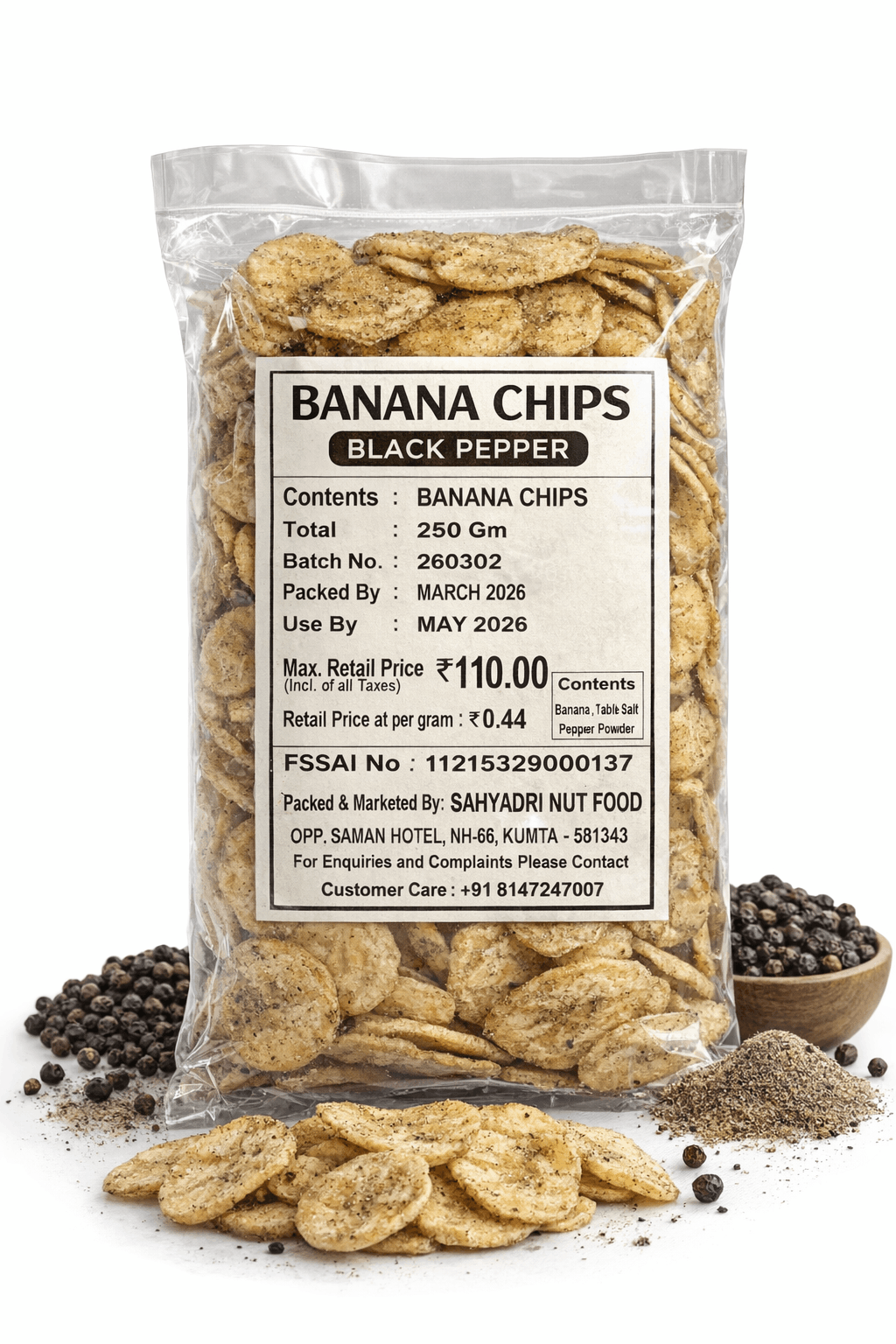 A favorite snack across India, banana chips are loved for their crispiness and natural flavor. The addition of black pepper makes them irresistibly tangy and spicy, offering a healthier alternative to processed snacks. Perfect for tea-time, festive gatherings, or as a quick bite, these chips are free from artificial additives and crafted to bring authentic taste straight to your table.