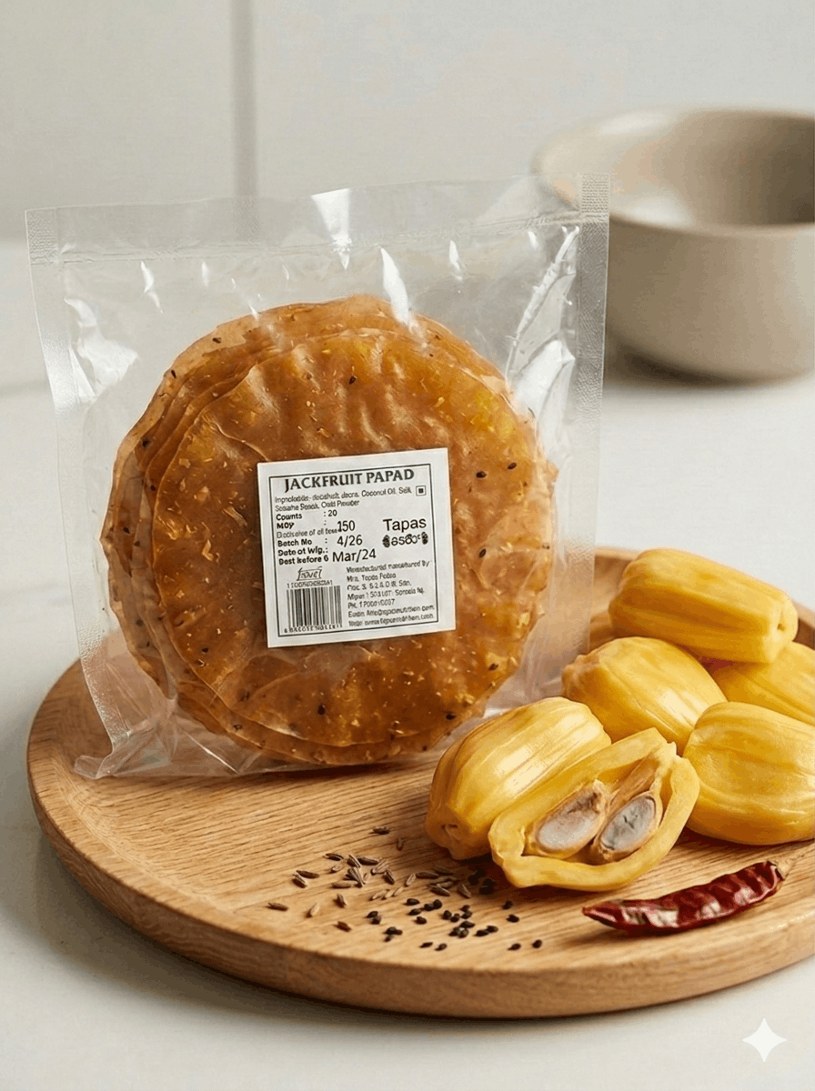 Thin, crispy, and full of flavor, Jackfruit Papad is a versatile snack that can be roasted or fried to suit your taste. It pairs beautifully with rice meals, serves as a crunchy side dish, or can be enjoyed on its own as a wholesome snack. Free from artificial additives, this papad is a healthier alternative to processed snacks, offering both taste and nutrition in every bite. Whether served during festive occasions or as an everyday treat, Jackfruit Papad brings the authentic flavors of the Western Ghats straight to your table.