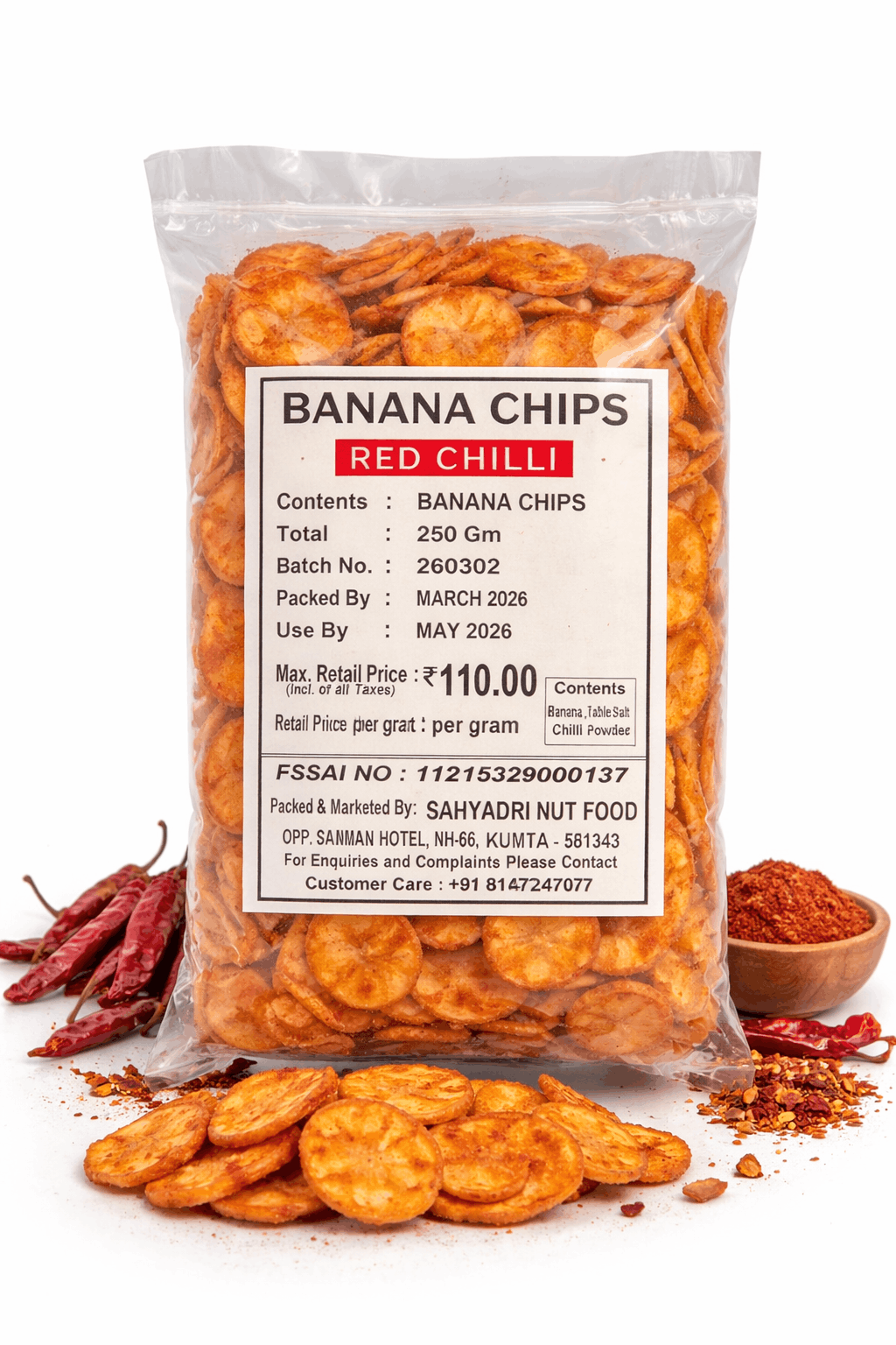A beloved snack across India, banana chips are known for their crispiness and natural flavor. The addition of red chilli powder makes them irresistibly hot and tangy, offering a flavorful alternative to regular chips. Perfect for tea-time, festive gatherings, or as a quick bite, these chips are free from artificial additives and crafted to bring authentic taste straight to your table.